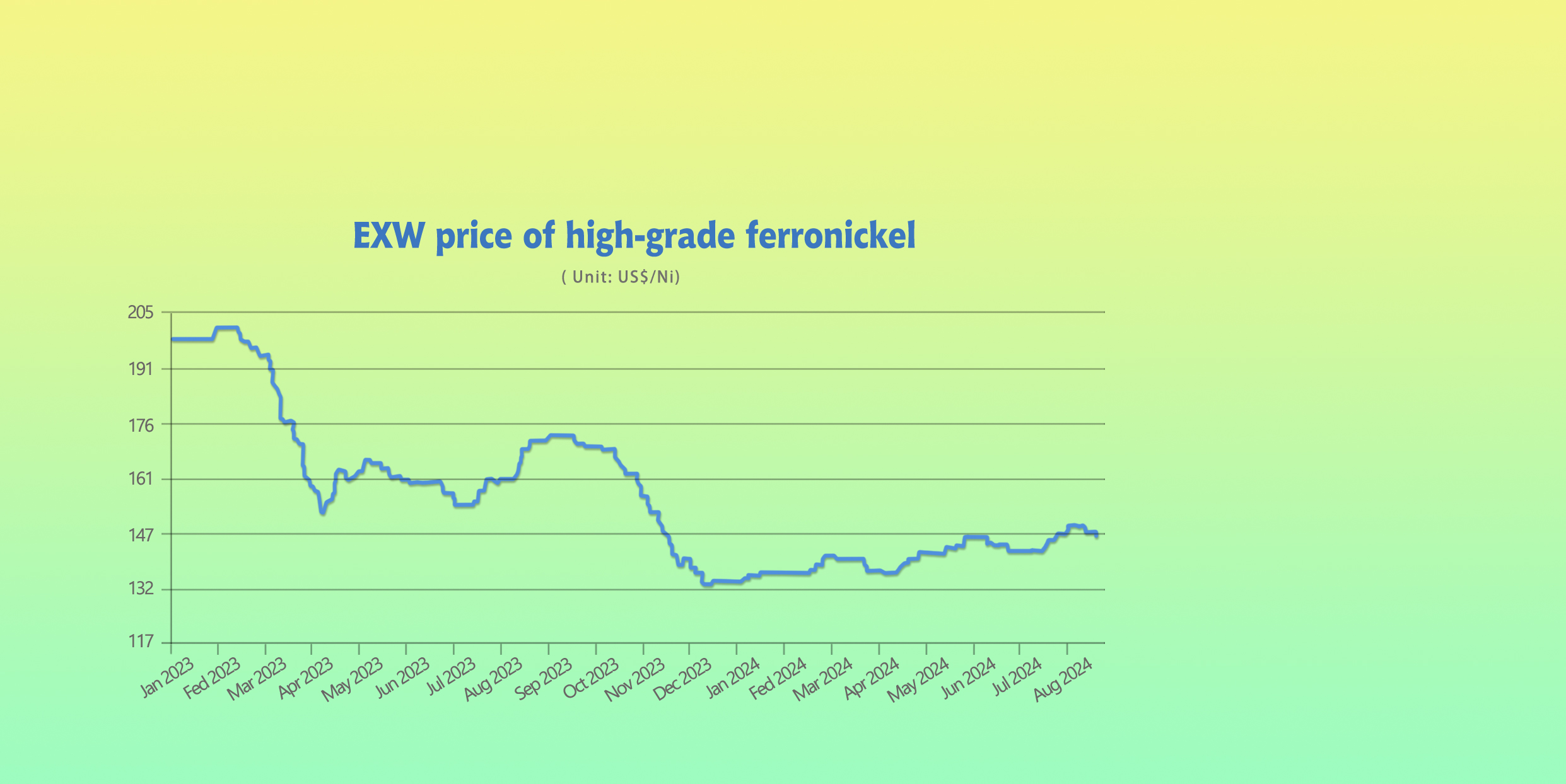 Last week, the ex-factory price of high-nickel pig iron has slightly lay down, closing at US$142/Nickle as of last Thursday, down US$1.41 from last Thursday.
