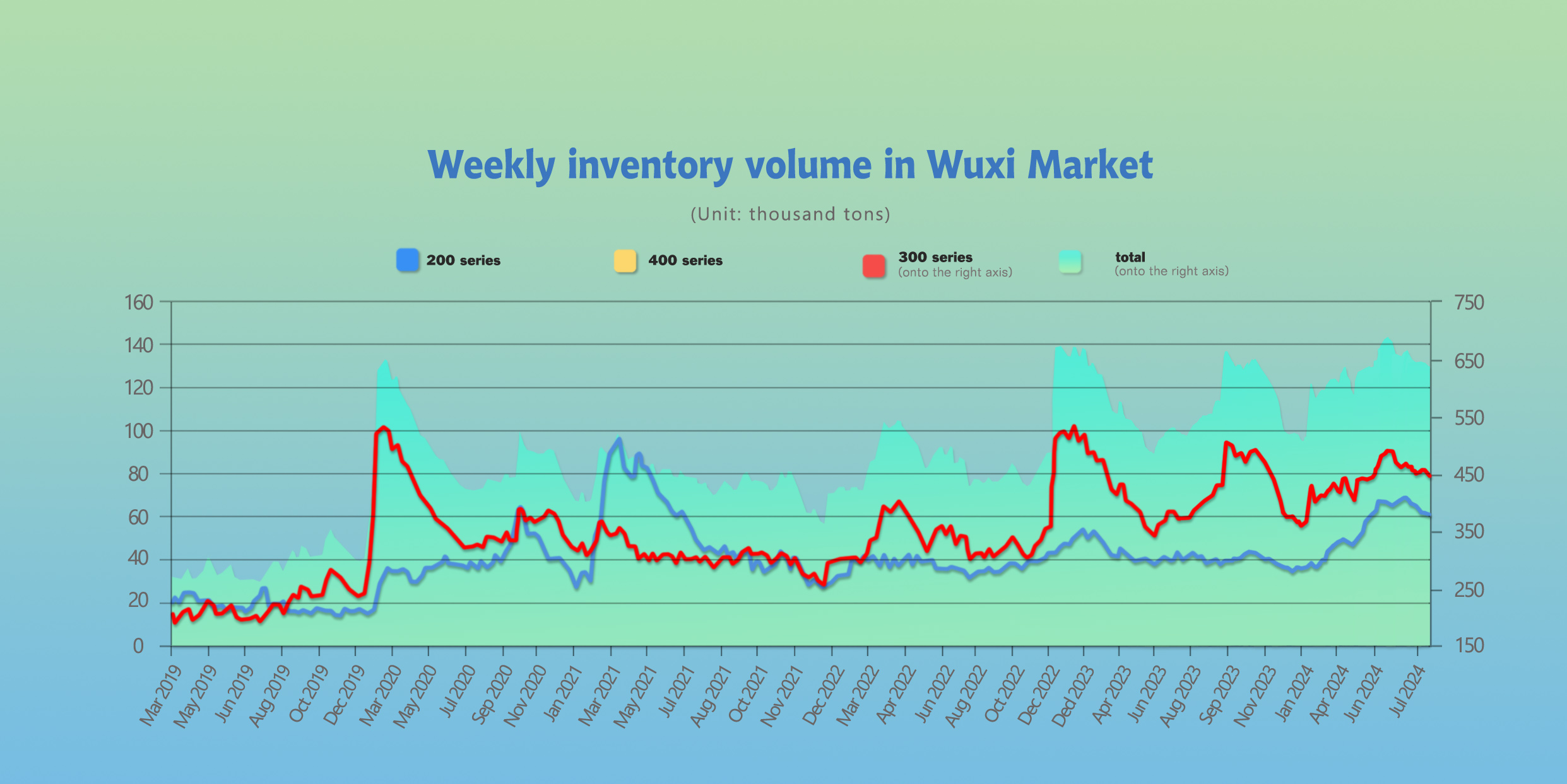 Last week, the macro atmosphere improved. The latest minutes from the Federal Reserve meeting indicated that interest rates will be cut for the first time in September, and further cuts may occur later in the year, which is positive for the commodity market. As of Friday, the main stainless steel contract increased by US$11/MT to US$2065/MT for the week, representing a cumulative increase of 0.55%. The main SHFE nickel contract increased by US$396 to US$18765/MT for the week, representing a cumulative increase of 2.19%. Last week, steel mill production decreased, imports continued to decline, and market arrivals decreased, reducing supply pressure; demand recovered slowly, prices fell to low valuations, and some end-users had a stronger willingness to speculate and purchase, improving the supply and demand situation, and inventory decreased slightly.