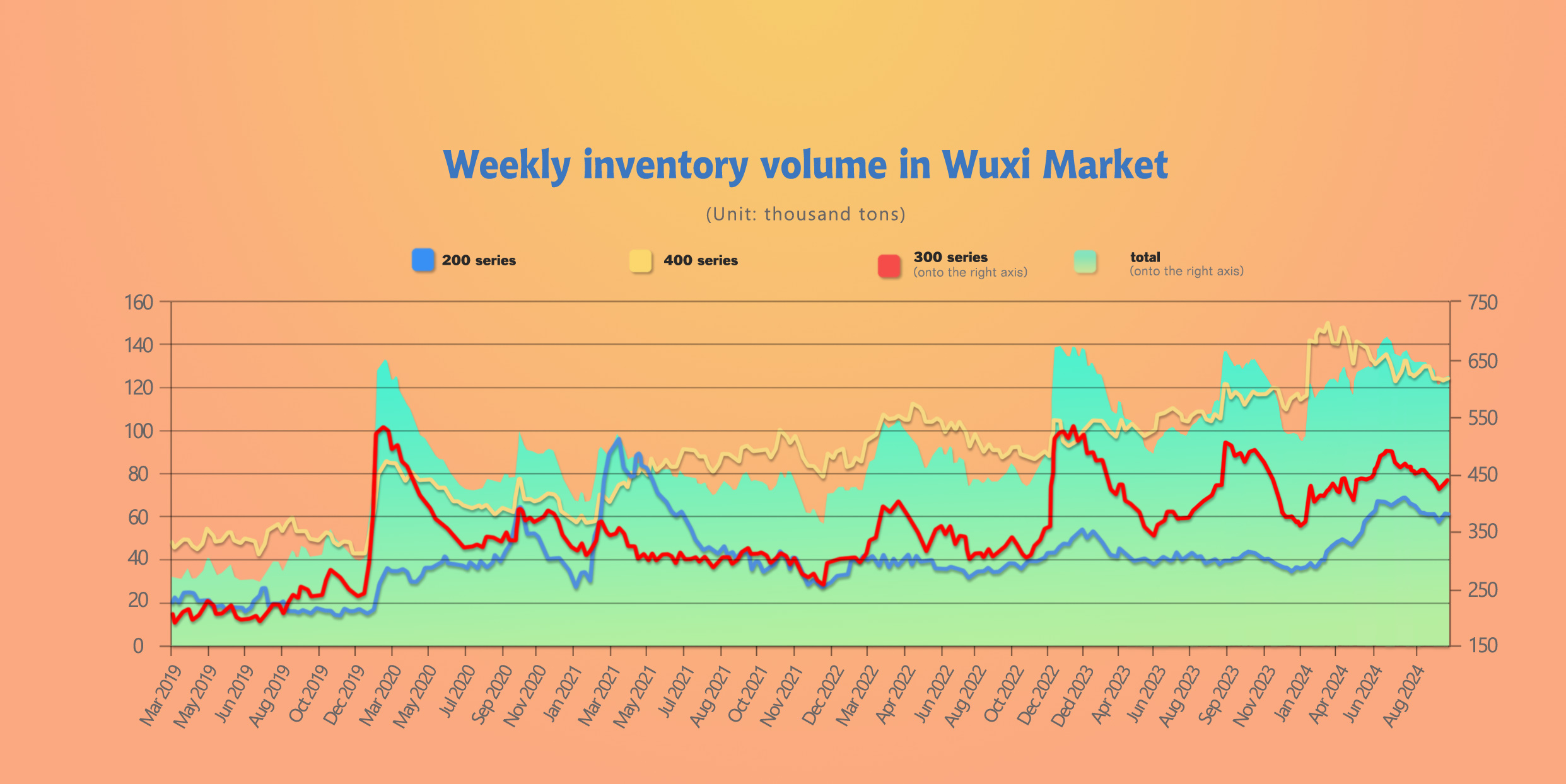 Last week, the futures market showed a trend of fluctuating and strengthening, coupled with the release of downstream terminal replenishment demand before the holiday, market sentiment rebounded somewhat. However, due to the impact of extreme weather caused by typhoons, spot transactions were limited, trading volume was low, and inventory increased slightly. The output of 400 series crude steel in August fell from a high level, and the planned production of steel mills in September was further reduced, reducing the amount of goods arriving in the market later, and easing supply-side pressure. The price of high-chromium raw materials remained stable, and cost support still existed, limiting the downward space for prices. With the start of the Federal Reserve's interest rate cut cycle boosting market confidence and the gradual release of domestic and foreign macroeconomic benefits, warming downstream sentiment may drive demand to improve. It is expected that inventory will decline slightly next week. In the future, we will continue to pay attention to inventory changes and market transaction conditions.