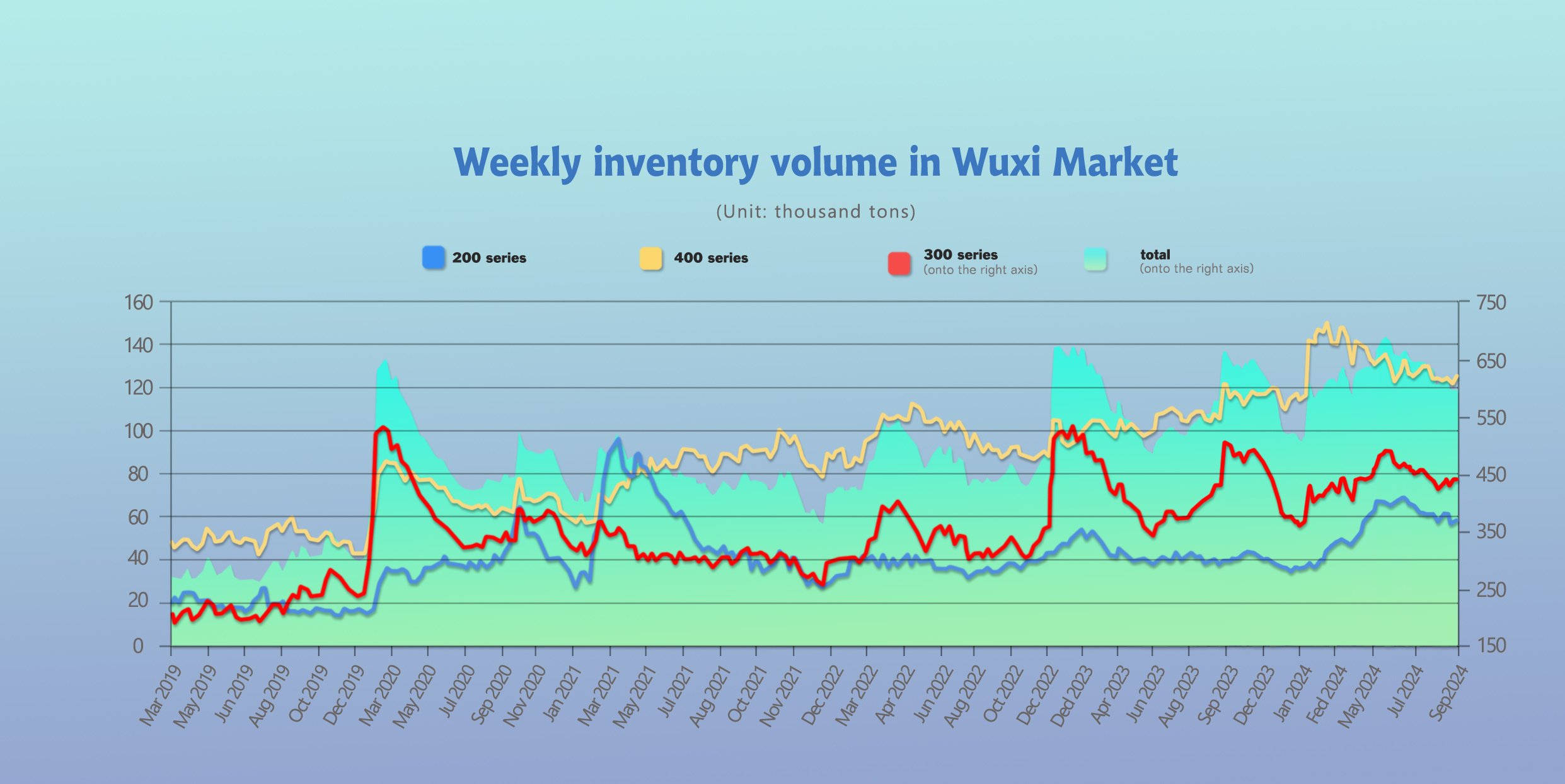 200 Series: Production cuts by steel mills, favorable macro policies, and stocking demands during the National Day holiday have collectively contributed to inventory reduction in the 201 market, with spot prices continuing to rise. Prices saw a slight correction in the latter half of the week, with traders offering discounts of US$7/ton for sales. However, traders remain optimistic about future trends, with some agents maintaining firm quotes. In the short term, 201 prices are expected to operate steadily with a slight upward bias.