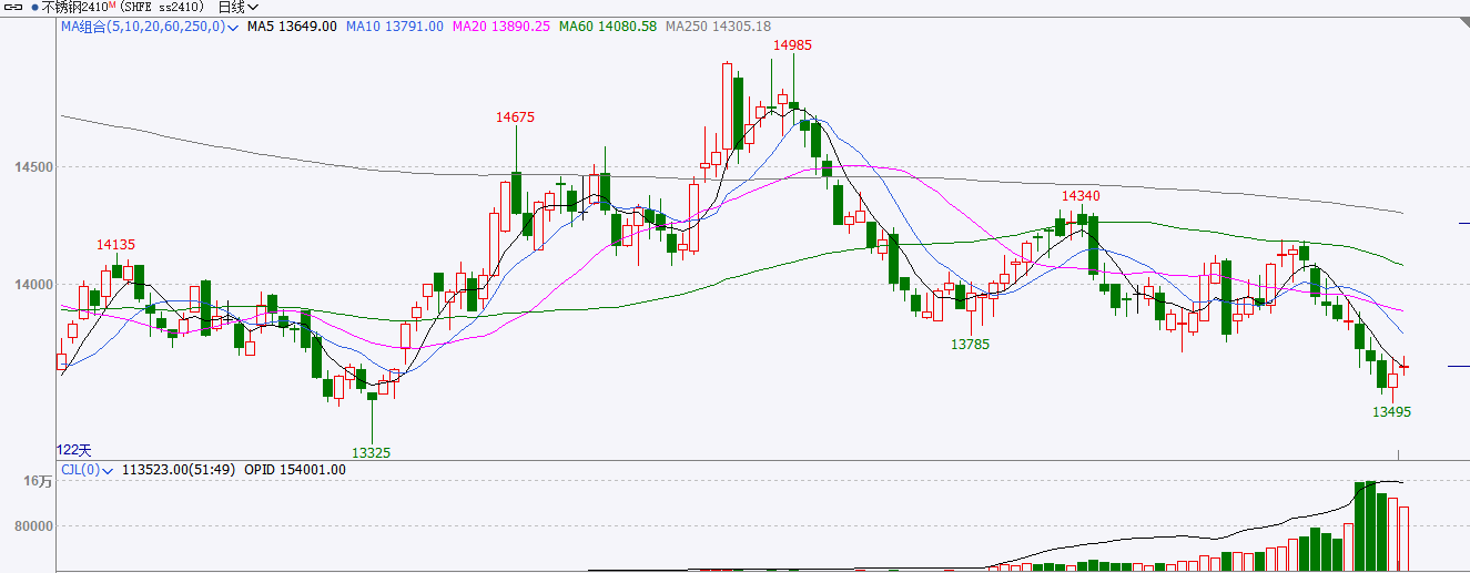 Last week, the main futures price continued to decline, and spot prices fell slightly. Market arrivals decreased last week, futures prices continued to decline, and steel mills actively reduced production to reduce inventory, leading to a slight decrease in 300 series inventory.