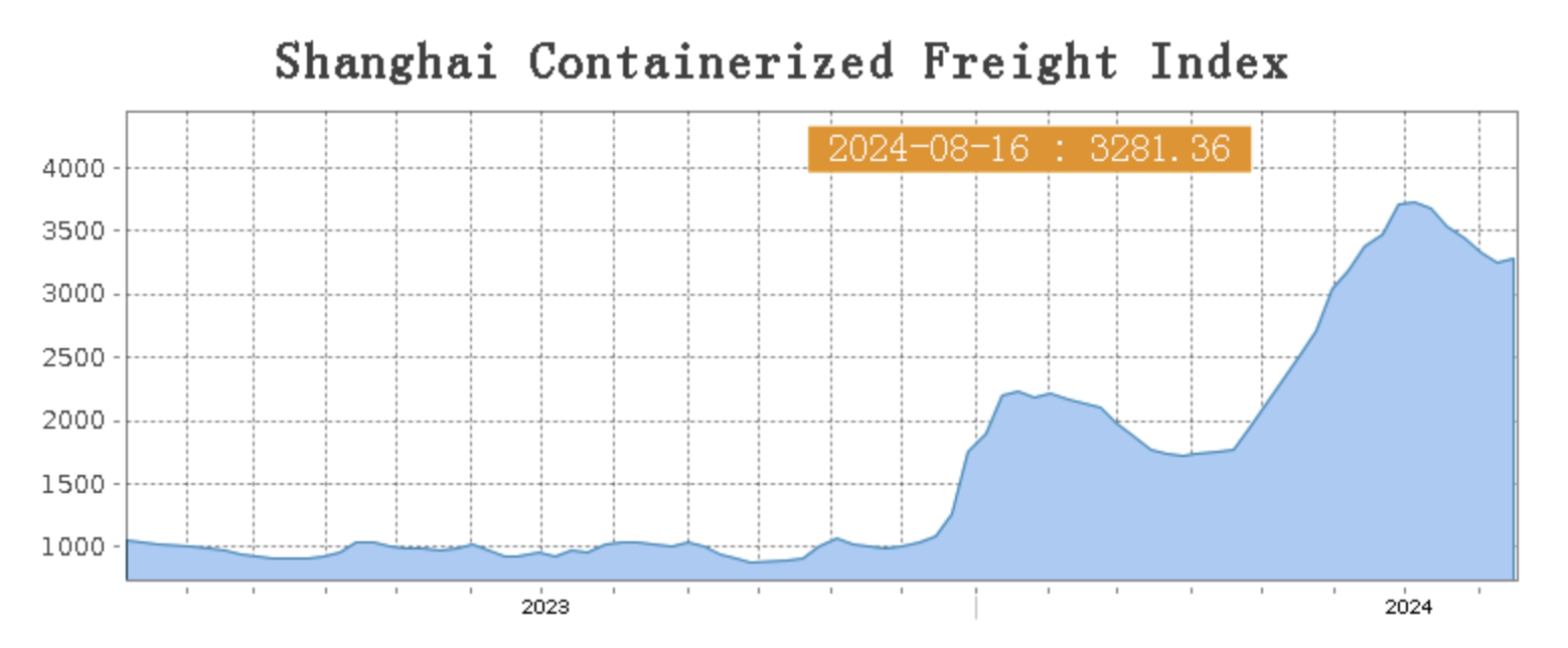 Last week, the Chinese export container shipping market remained generally stable, with freight rates on major ocean routes fluctuating. The composite index experienced slight fluctuations. On 16th August, the Shanghai Containerized Freight Index lifted by 0.8% to 3281.36.