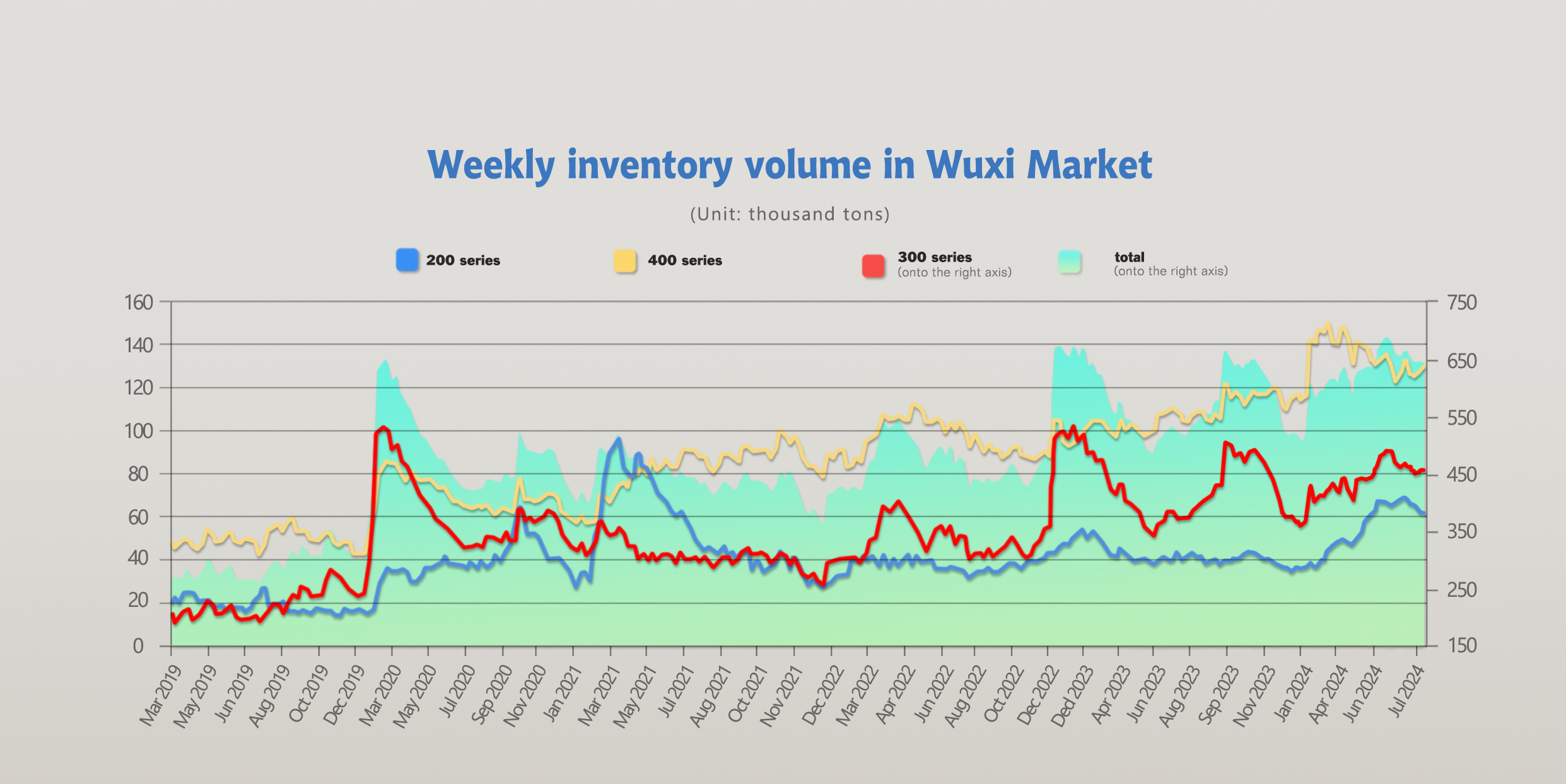 Inventory in Wuxi sample warehouse (Unit: tons) | 200 series | 300 series | 400 series | Total |