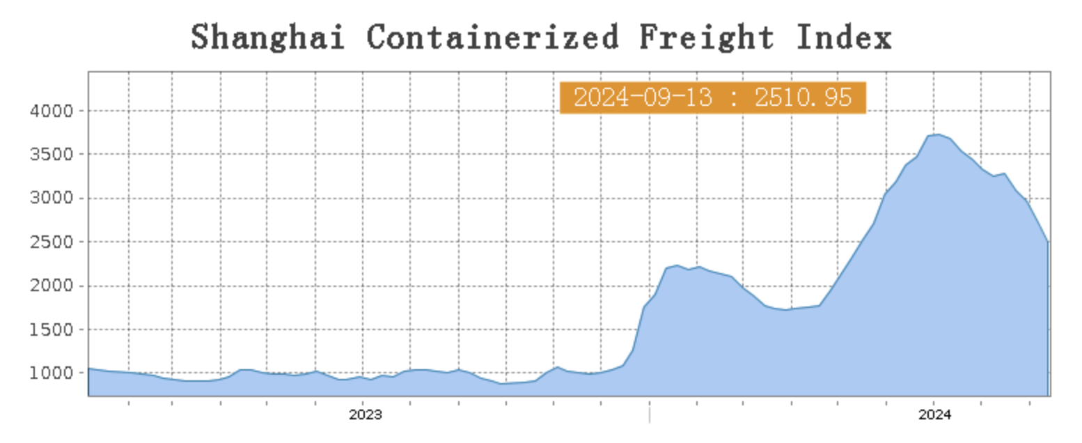 On 13th September, the Shanghai Containerized Freight Index dropped by 7.9% to 2510.95.