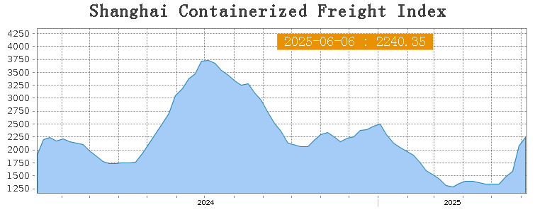 Last week, China's container export shipping market maintained an overall positive trend. Freight rates on most major ocean routes continued to rise, pushing the composite index further upward. On June 6th, the Shanghai Containerized Freight Index (SCFI) rose 8.1% to 2240.35 points.