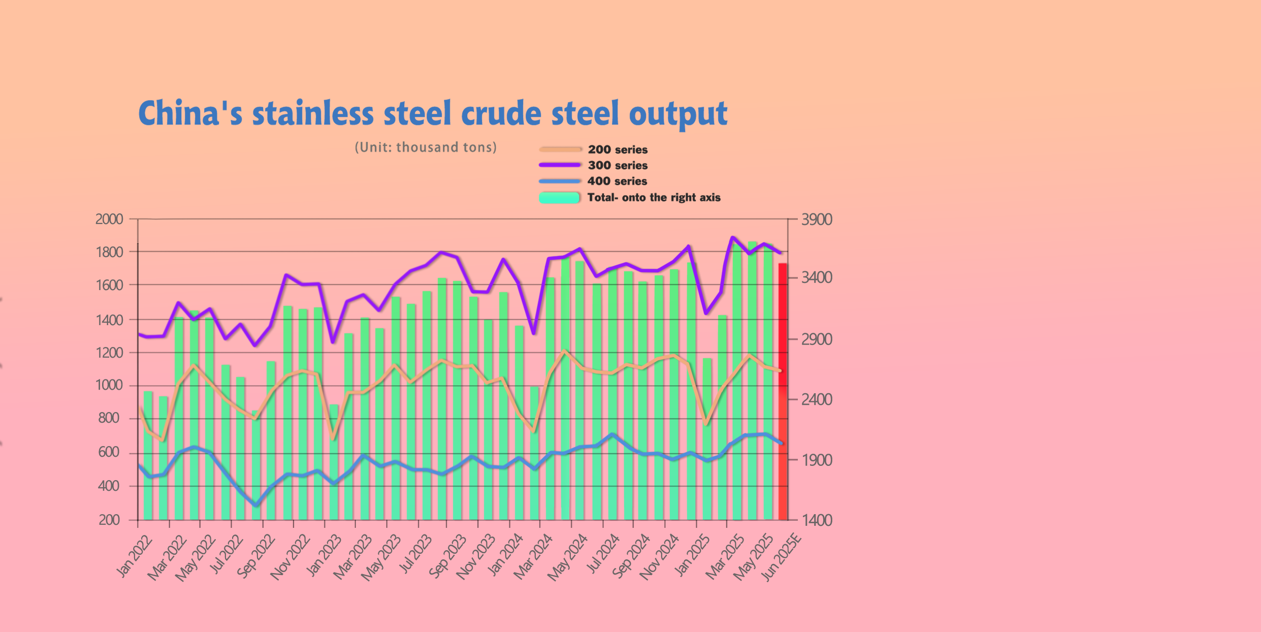 400 series: 711,400 tons, down 1,600 tons MoM (-0.22%), up 85,400 tons YoY (+13.64%).