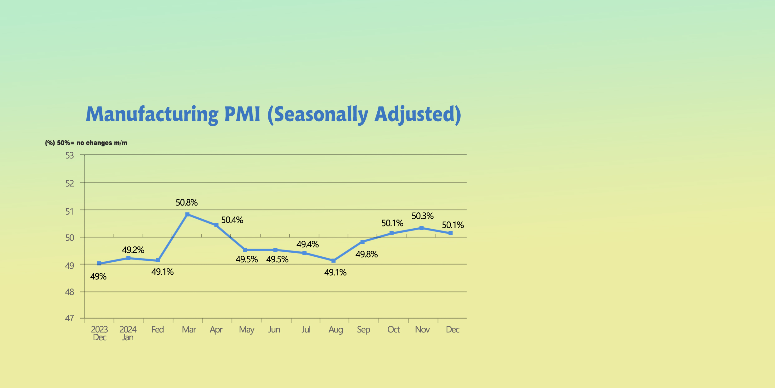 MACRO || China's Manufacturing PMI in December 2024 at 50.1%.