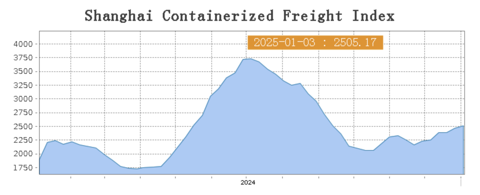 Last week, transportation demand growth was weak, the supply and demand balance was not ideal, and market freight rates fell slightly. China’s Containerized Freight market continued to be interrupted by the regional fluctuation. On 3rd January, the Shanghai Containerized Freight Index rose by 1.8% to 2505.17.