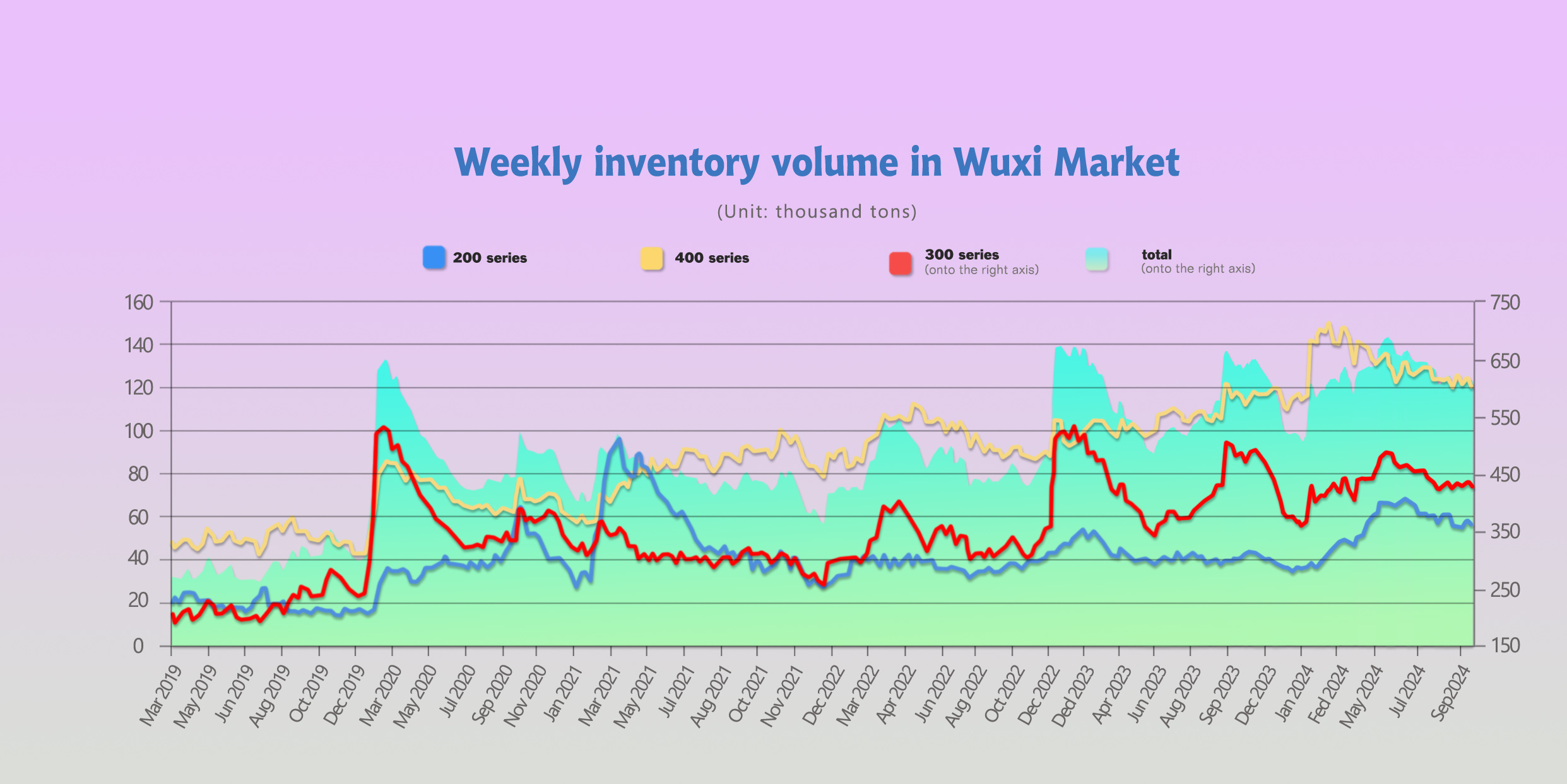 During last week, the fluctuation of the futures market repeatedly affected market trading confidence. During the week, traders took the initiative to reduce inventory and increased their willingness to offer promotional discounts, leading to an influx of low-priced resources in the market. Downstream buyers were more willing to purchase at low prices, and low-price transactions were acceptable during the week. At the end of the month, steel mills urged settlement and delivery, and agents such as JISCO increased their deliveries, significantly reducing steel mill front-end inventory. On the raw material side, high-chromium prices continued to decline following the steel procurement price, and the cost support for the 400 series declined. In October, steel production continued to contract, and market supply pressure eased, but overall downstream demand remained weak, and the inventory digestion speed was slow. It is expected that inventory may decrease slightly next week. The focus will be on subsequent steel mill production and market transaction conditions.