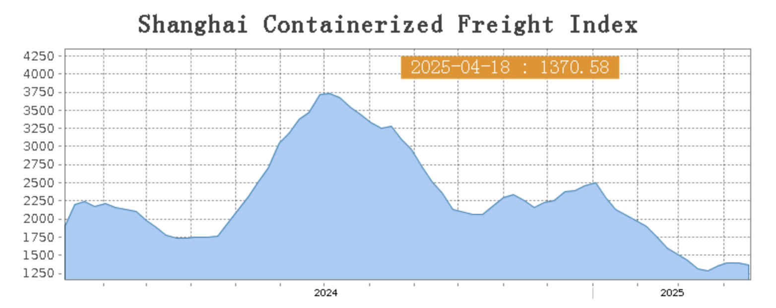 China’s export container shipping market remained generally stable last week, with the composite index edging slightly. On April 18th, the Shanghai Containerized Freight Index (SCFI) fell 1.7% to 1370.58 points.