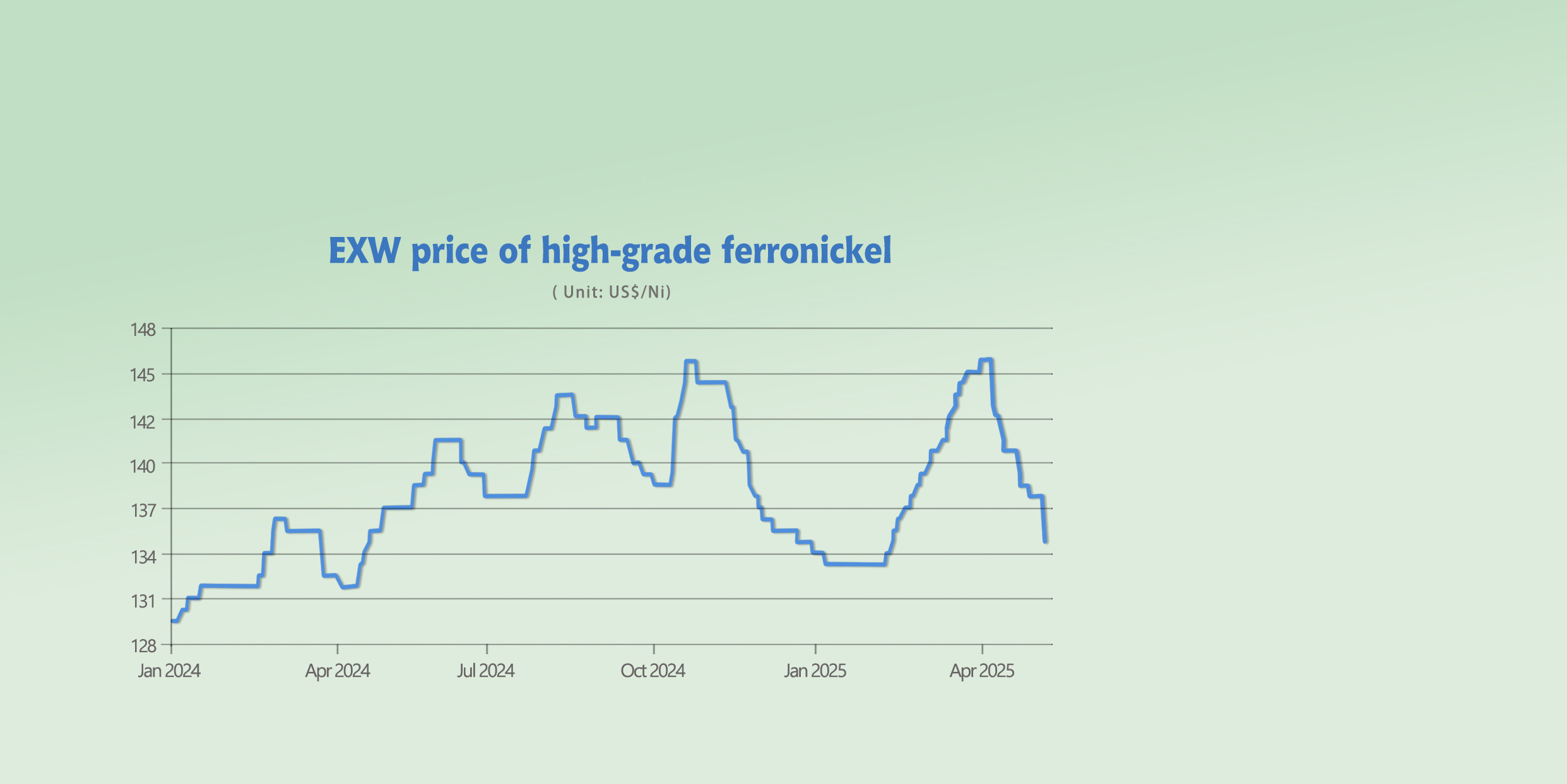 Last week, high-grade nickel pig iron (NPI) ex-factory prices dropped significantly, reaching US$134.31/Nickel poinnt as of Thursday, down US$3.5 from before the holiday. Since early April, NPI prices have fallen by a total of US$11.25/Nickel point, a 7.8% decrease.