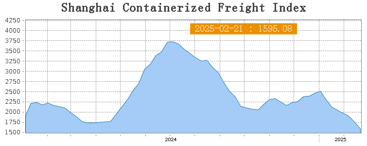 On February 21st, the Shanghai Containerized Freight Index (SCFI) fell 9.3% to 1595.08 points.