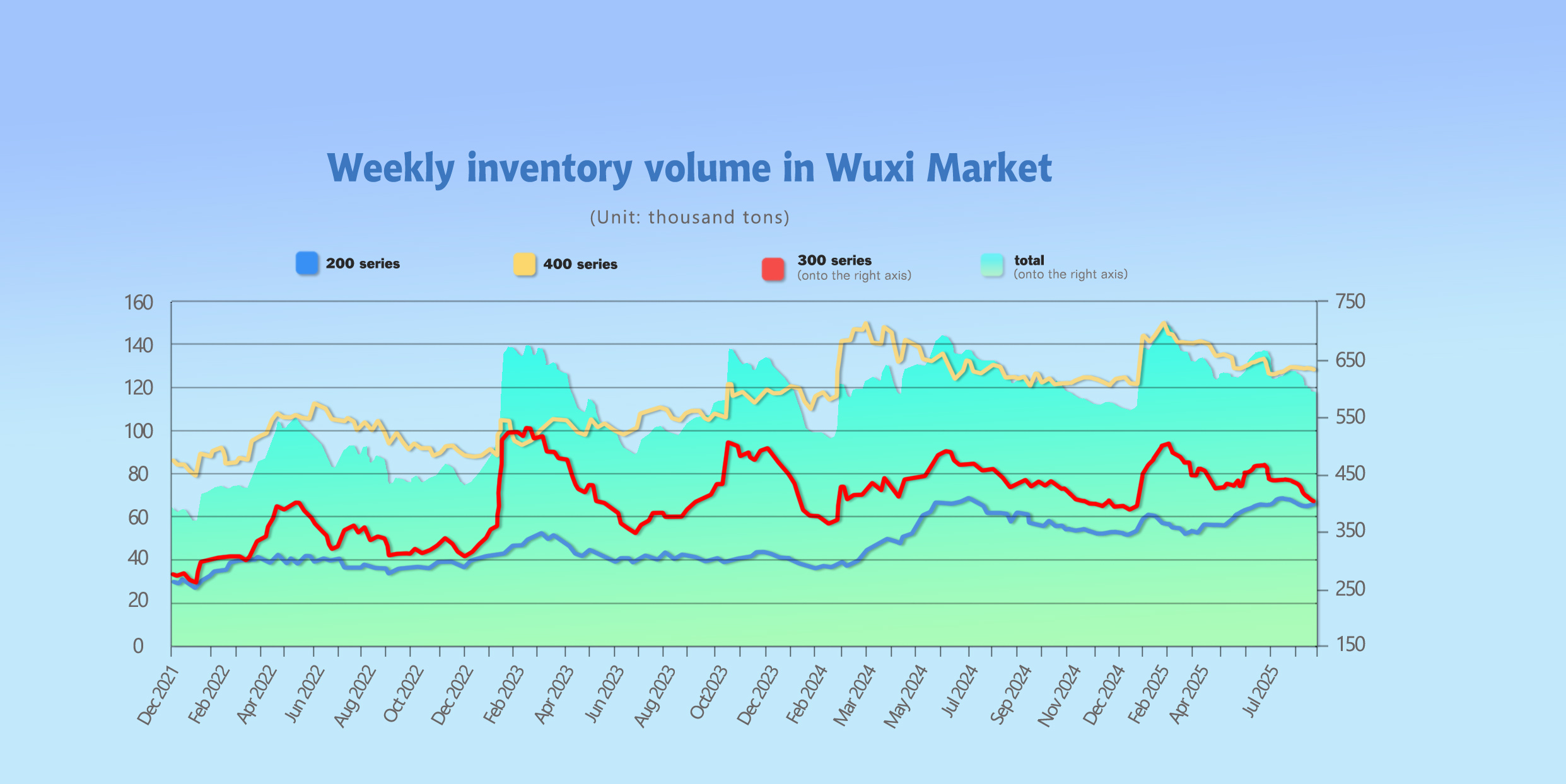 As of August 21st, total inventory in Wuxi sample warehouses decreased by 8,353 tons to 587,385 tons.