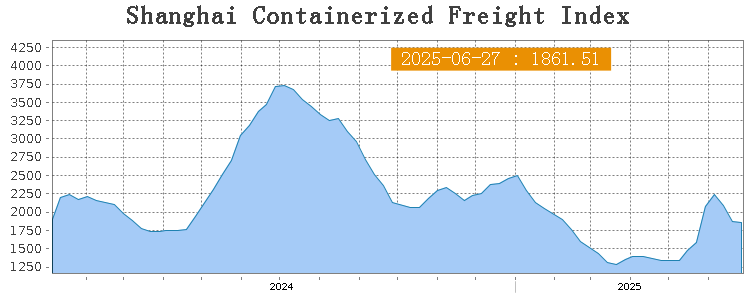 On June 27th, the Shanghai Containerized Freight Index (SCFI) fell 0.4% to 1861.51 points.