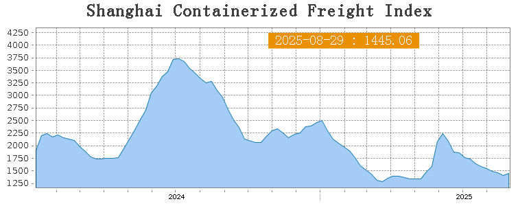 On August 29, the Shanghai Containerized Freight Index (SCFI) rose 2.1% to 1445.06 points.