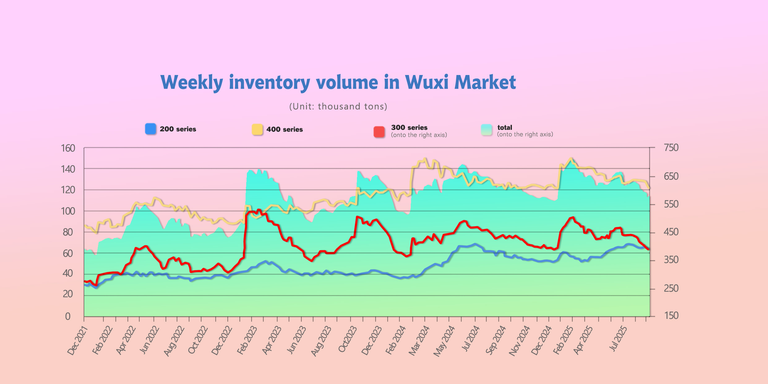 As of August 28, inventories at Wuxi sample warehouses fell to 565,820 tons, a weekly reduction of 21,565 tons.