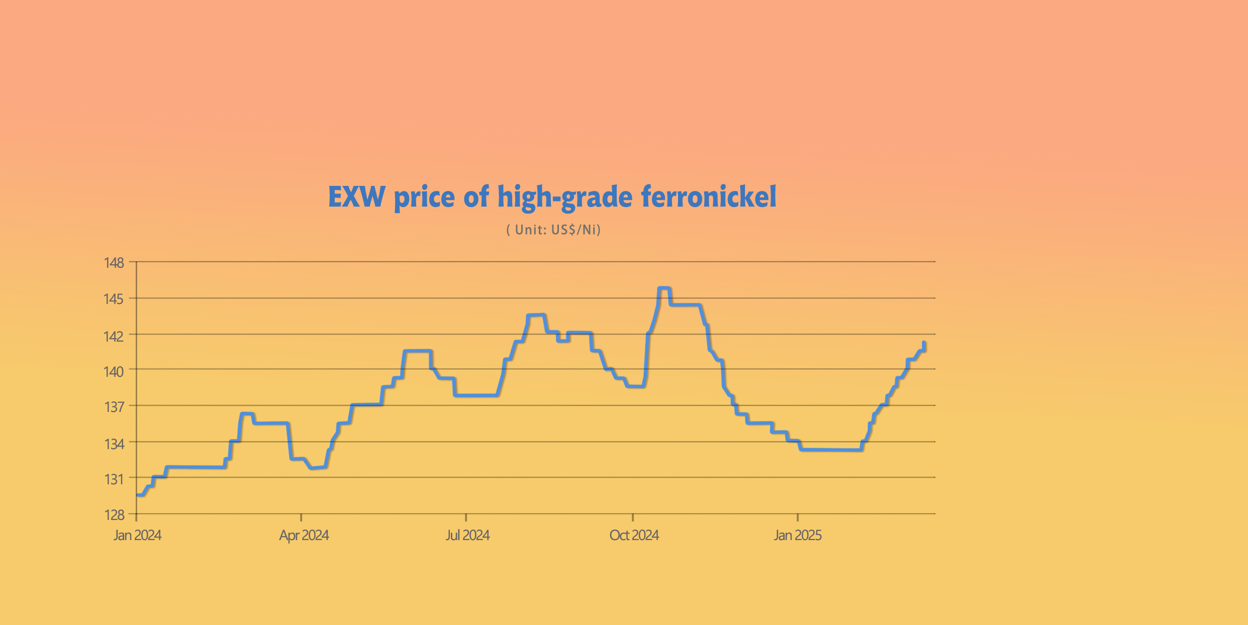 The ex-factory price of high-nickel ferronickel continued to rise. As of last Friday, it was reported at US$140/nickel point, an increase of US$2/nickel point compared to last Friday.