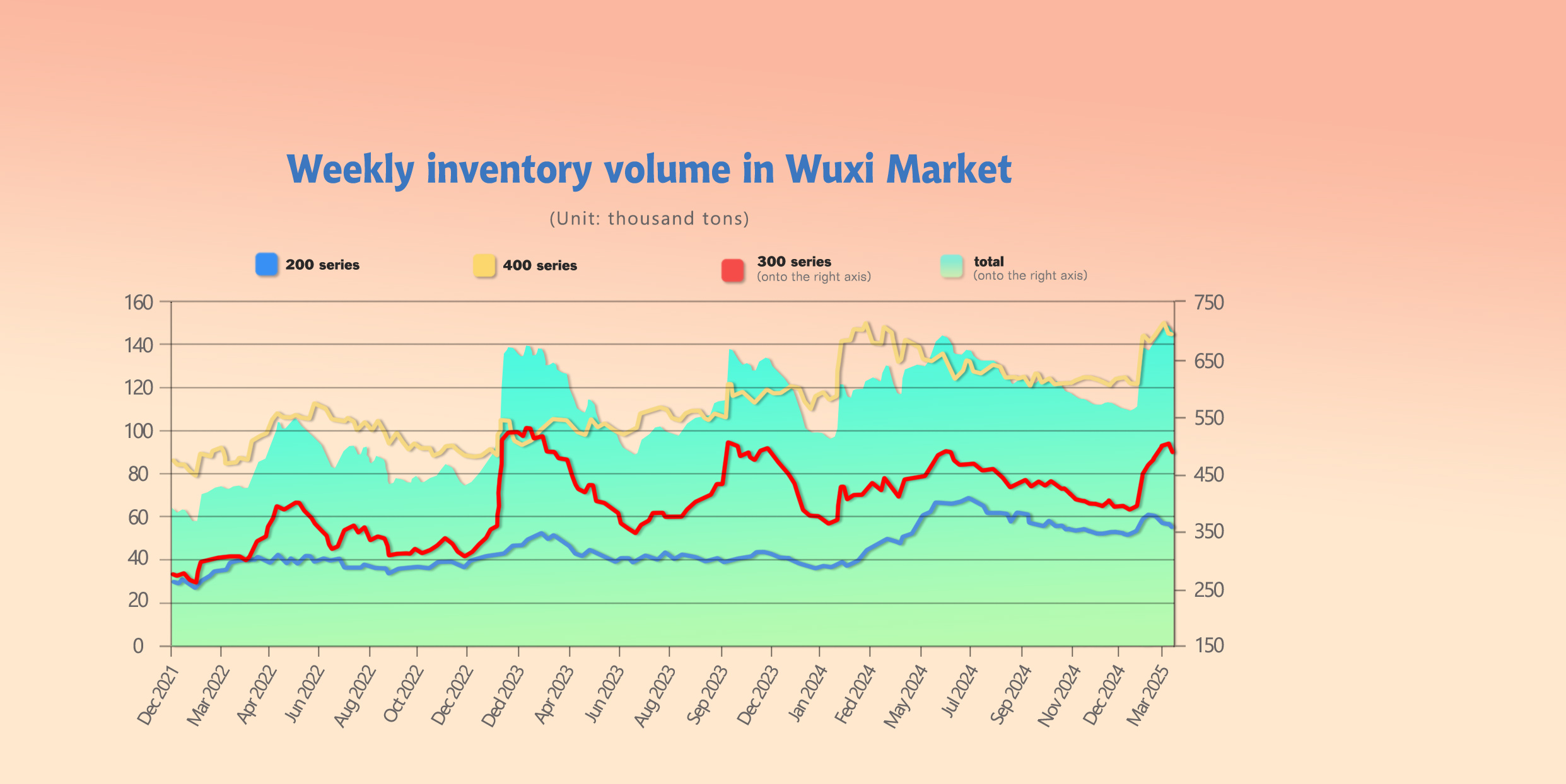 As of March 13th, total inventory in Wuxi sample warehouses decreased by 15,268 tons to 685,976 tons. Breakdown: