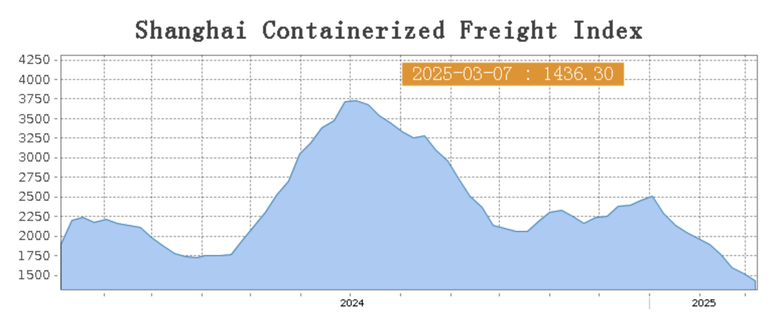 On March 7th, the Shanghai Containerized Freight Index (SCFI) fell 5.2% to 1436.29 points.