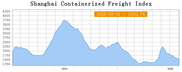 The Shanghai Containerized Freight Index dropped 2.6% to 1550.74. Key observations: