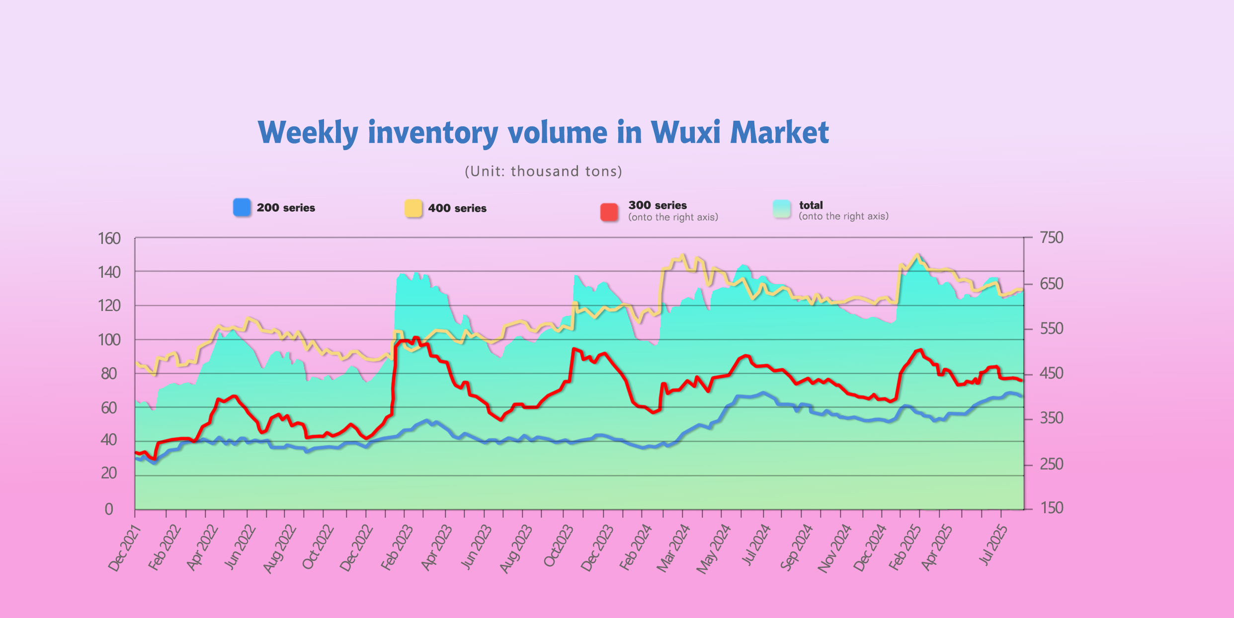 As of July 31st, total stainless steel inventory in Wuxi's sample warehouses stood at 620,773 tons, down by 12,680 tons week-on-week.
