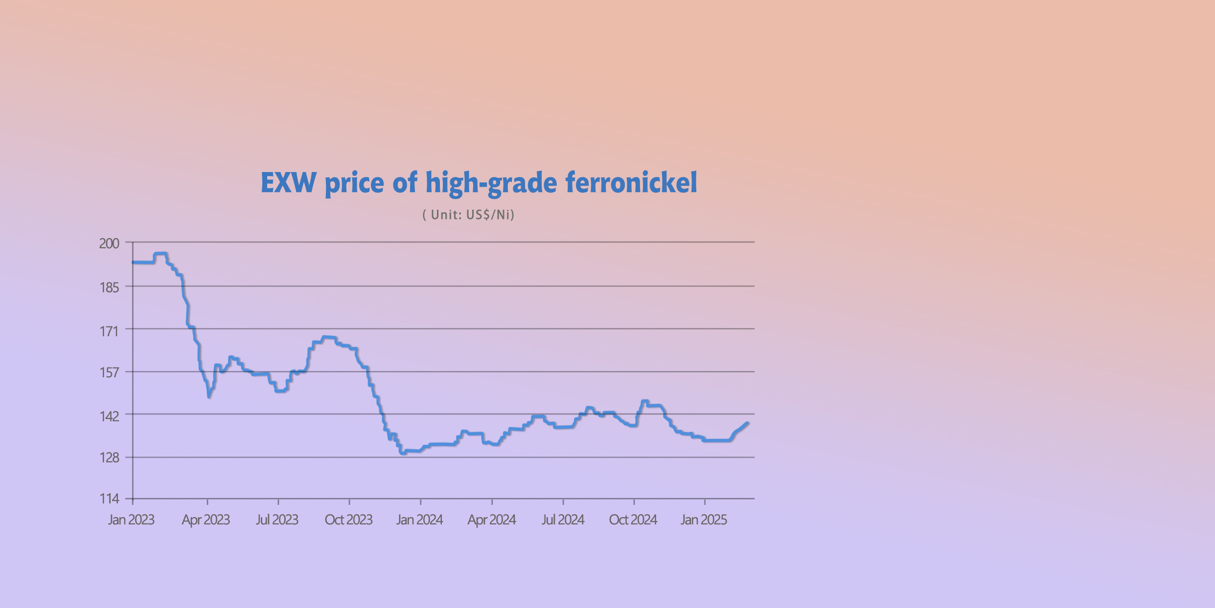 In January, domestic high-nickel iron prices continued to rise. The mainstream ex-factory price was reported at US$136.8/nickel point, up US$5.5/nickel point from the previous month, a 4.28% increase. The average ex-factory price in major production areas was US$133.6/nickel point, up US$3.05/nickel point from the previous month's average of US$130.5/nickel point, a 2.34% increase.