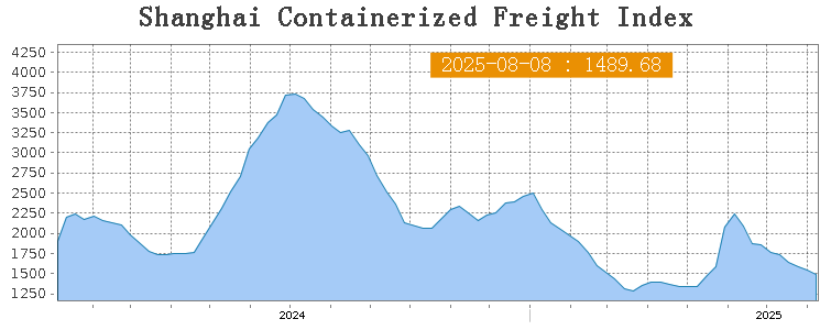 •Shanghai Containerized Freight Index (SCFI) fell 3.9% to 1,489.68 points on August 8.