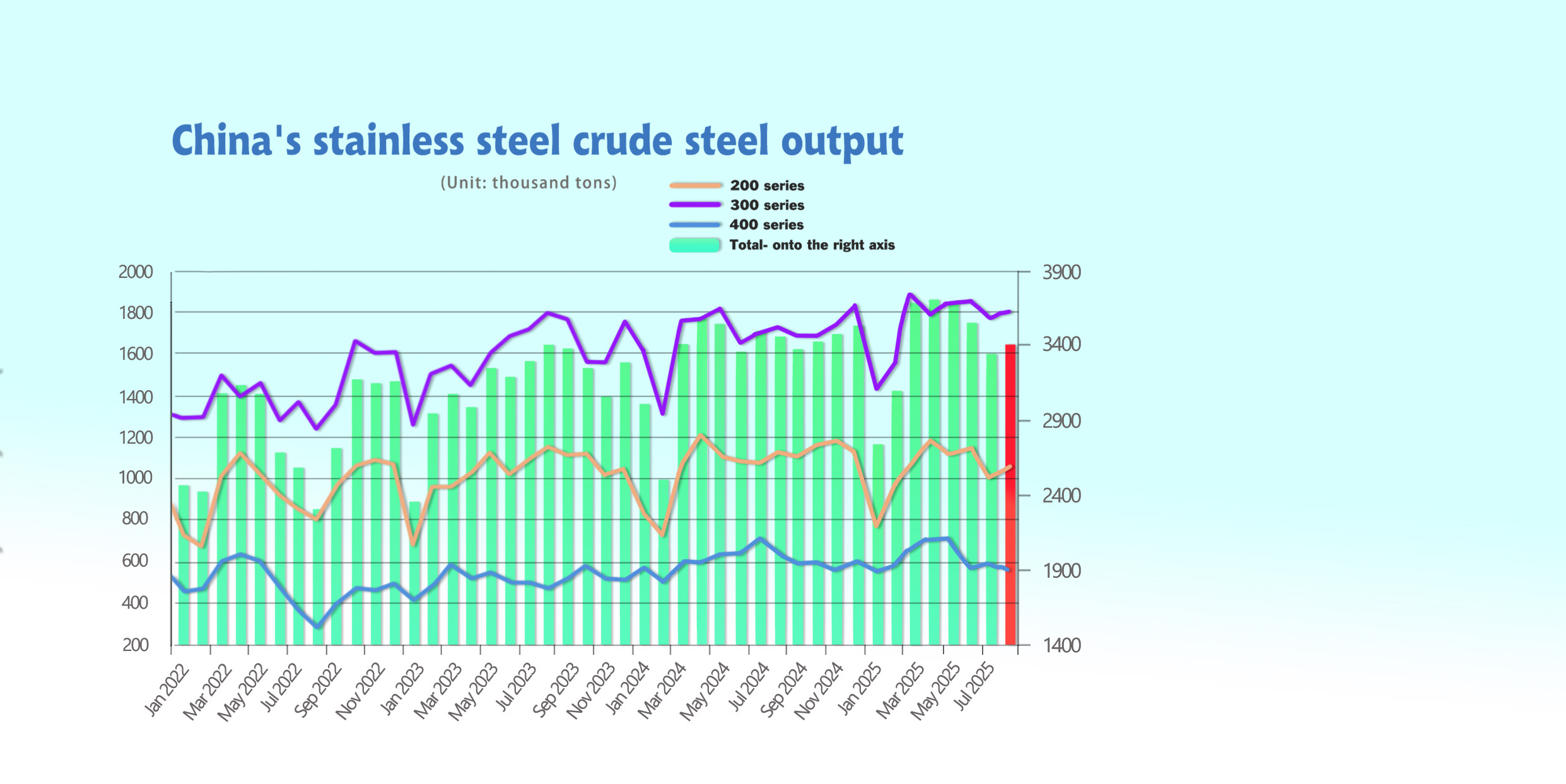 •300 Series: 1.7706 million tons, -3.87% MoM, +4.75% YoY