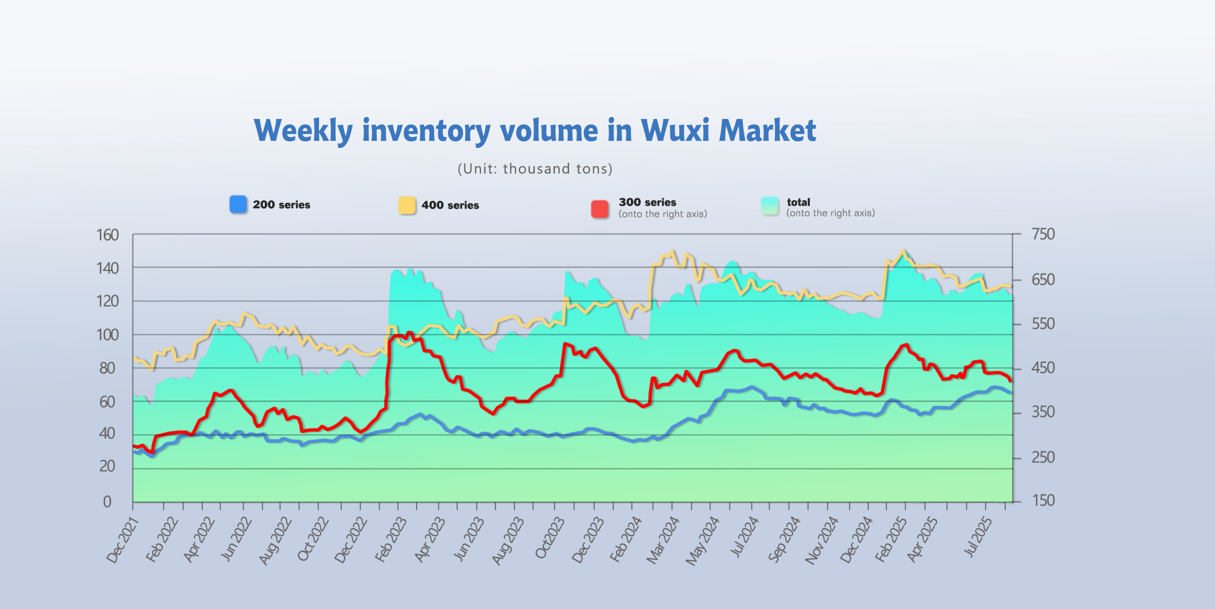 •400 Series: 585,600 tons, +2.57% MoM, -17.76% YoY