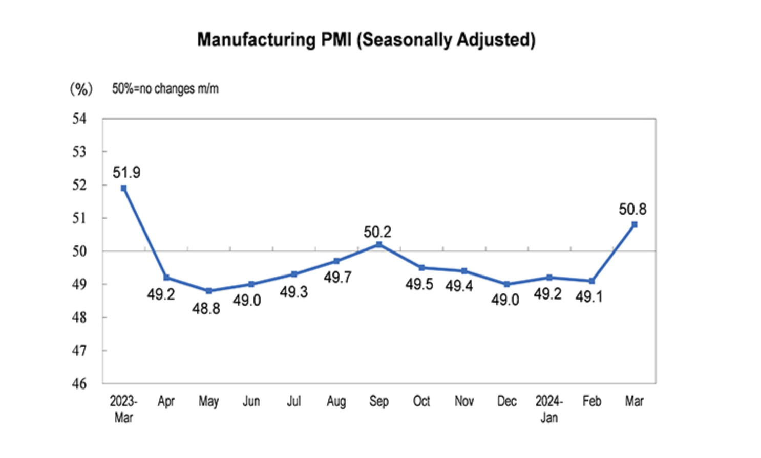 MACRO|| China's Manufacturing PMI Barely Climbed to 50.8% in March.