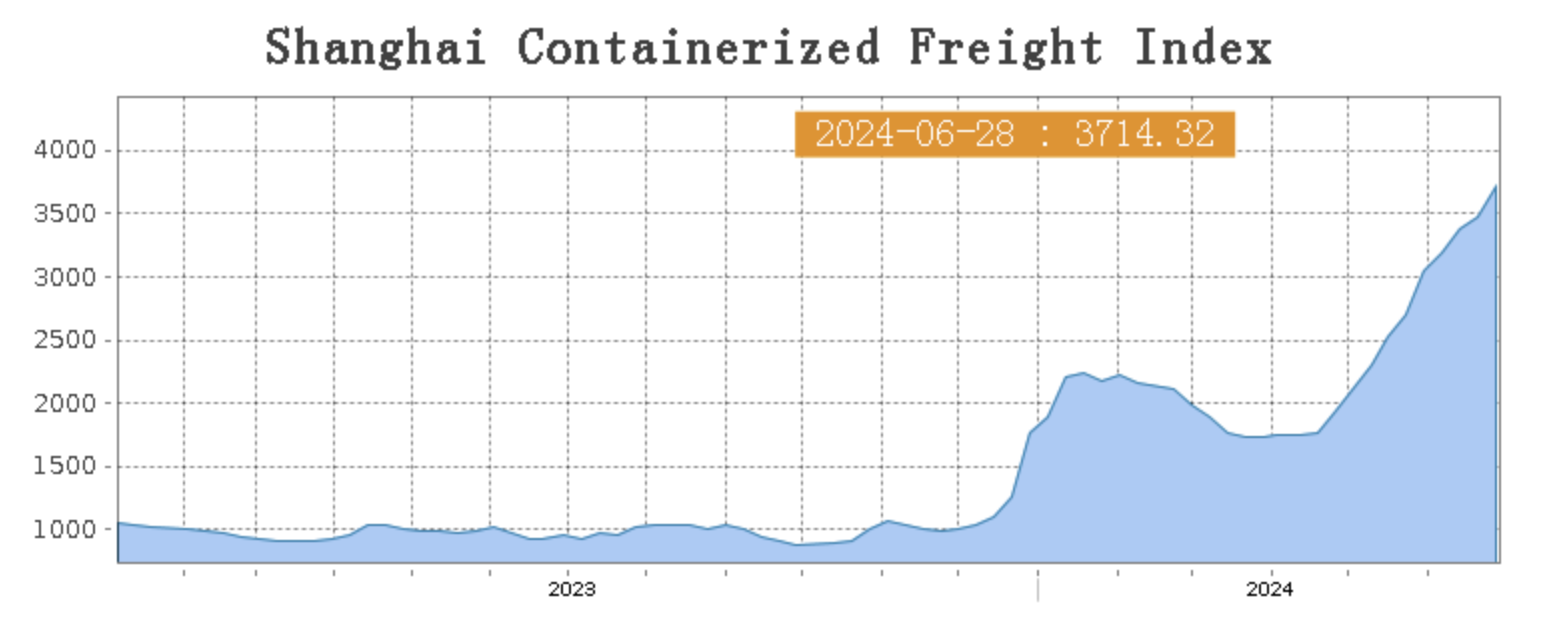 The Chinese Export Container Shipping Market Continues to Show a Steady and Upward Trend, overall shipping demand remained stable this week, and freight rates on most sea routes increased. The comprehensive index continued to rise. On 28th June, the Shanghai Containerized Freight Index rose by 6.9% to 3714.32.