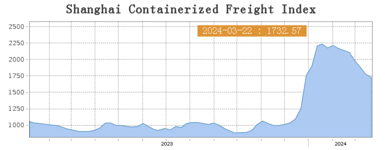 As the destination market has entered Ramadan, and considering the transportation cycle, some post-festival demand has already started in the market. On 22nd March, the freight rate (maritime and marine surcharges) exported from Shanghai Port to the major ports of the Persian Gulf rose by 6.6% from last week's posted US$1503/TEU.