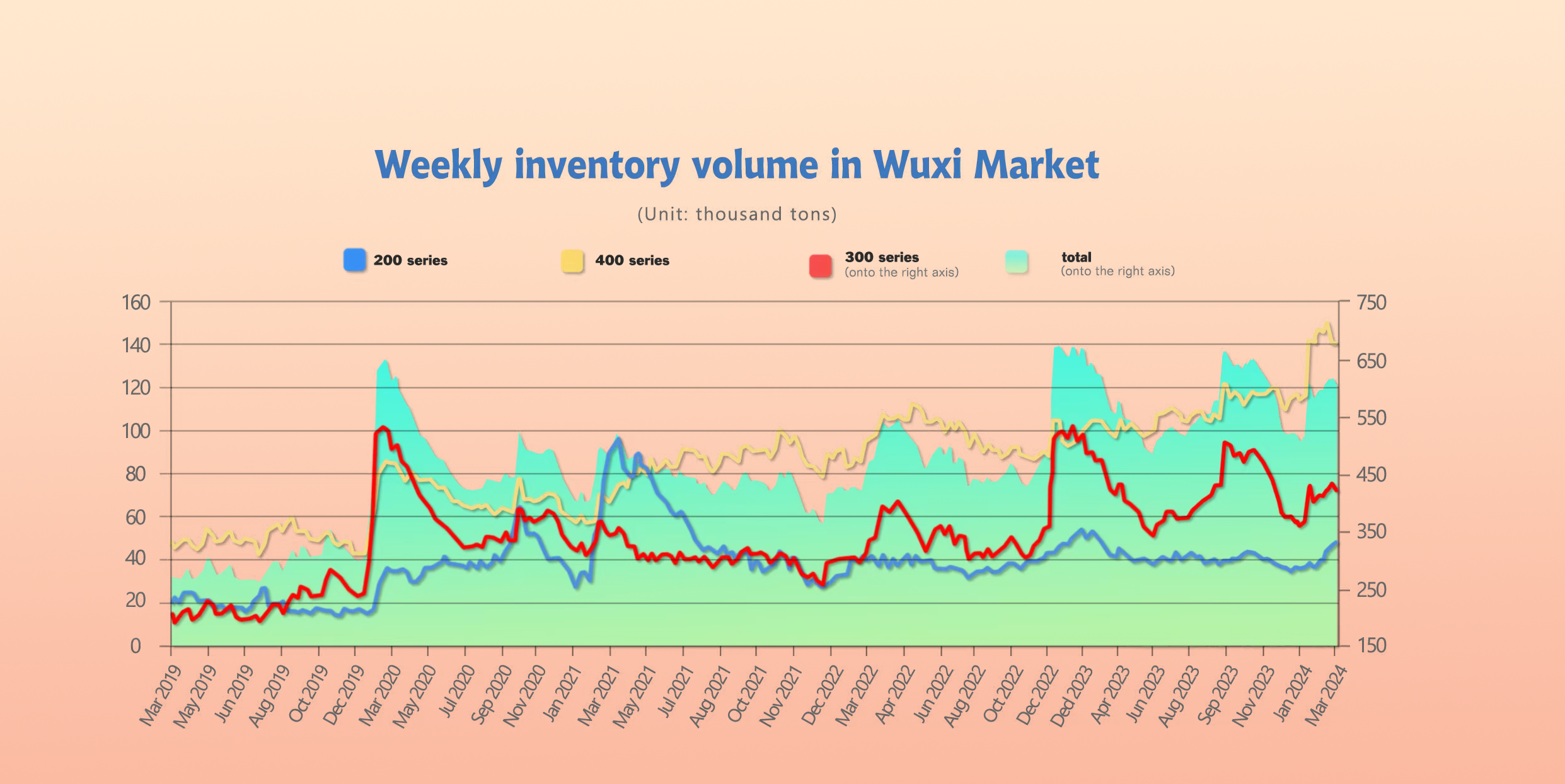 The total inventory at the Wuxi sample warehouse downed by 10,642 tons to 603,523 tons (as of 4th April).
