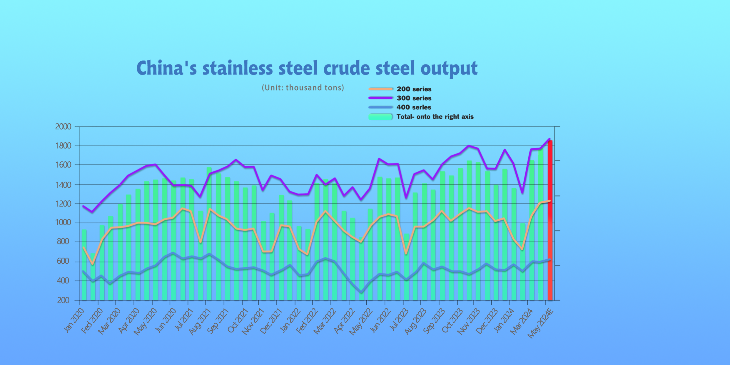 200 Series: Inventory increases by 45,000 tons, and the output in May remains high.