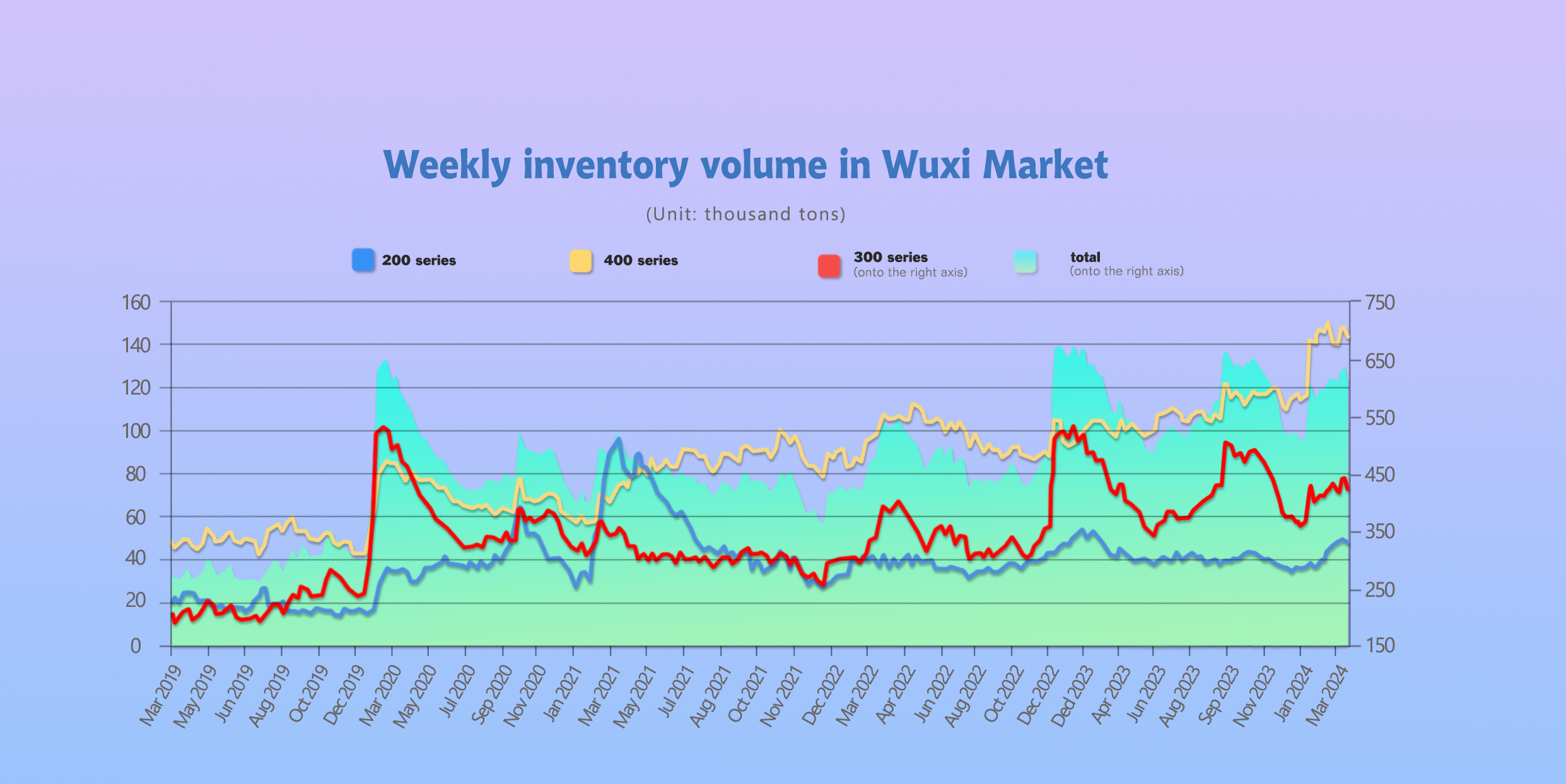 The total inventory at the Wuxi sample warehouse decrease by 23,912 tons to 612,060 tons (as of 18th April).