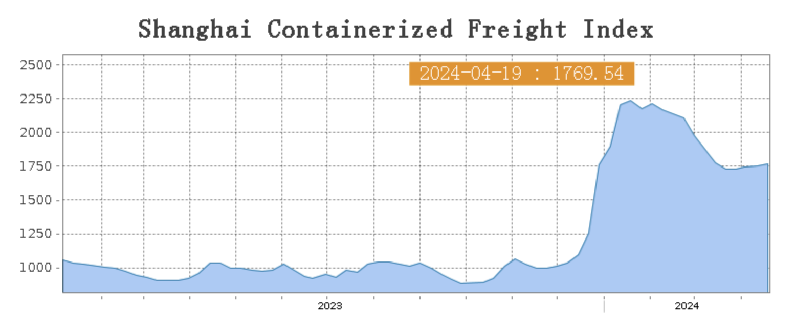 China’s Containerized Freight market continued to be interrupted by the regional fluctuation. On 19th April, the Shanghai Containerized Freight Index rose by 0.7% to 1769.54.